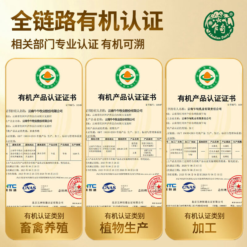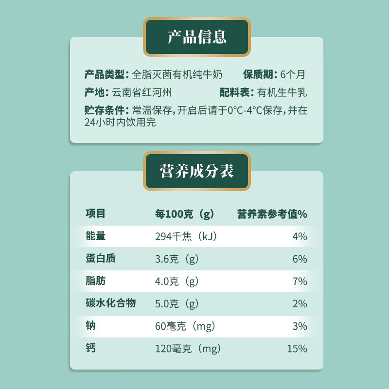 - 100%有机奶源:乍甸云南高原牧场3.6g有机纯牛奶采用来自自然生态的优质奶牛所产原奶,无任何人工添加剂和防腐剂,确保纯净、健康的品质。