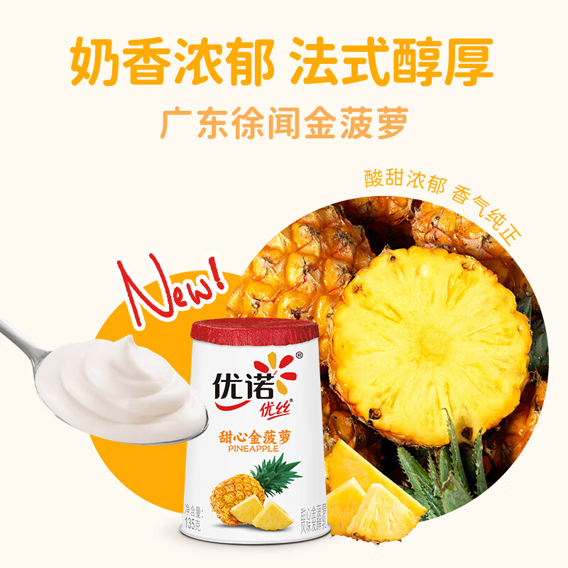 现在购买仅需 ¥25.9 就可以享受美味与健康兼具的优诺(Yoplait)优丝金菠萝果粒酸奶,数量有限,先到先得!