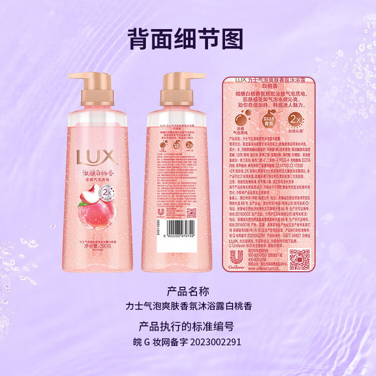 - 商品名称:力士(LUX)沐浴露 气泡爽肤香氛 白桃香390G