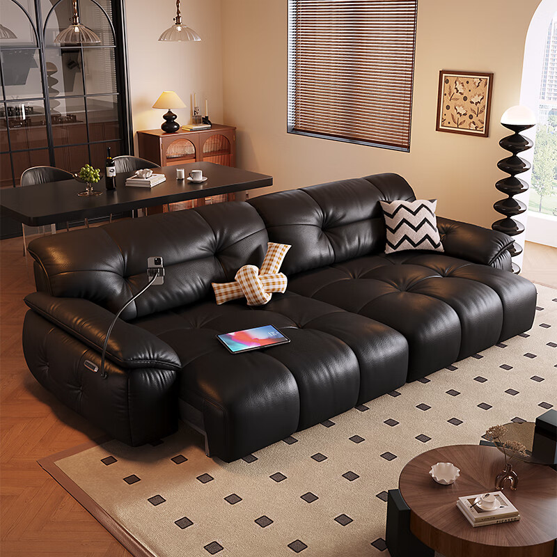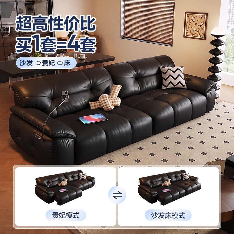 这款【卡尔适复古风功能沙发床】是2025年的新款产品,融合了时尚与实用的设计理念。采用头层黄牛皮S级材质,不仅外观典雅大方,而且耐用不易损坏。