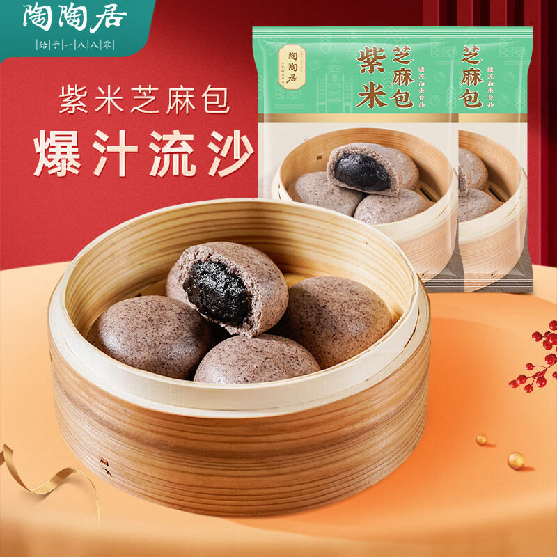 限时优惠!陶陶居紫米芝麻包半成品早茶点心,儿童早餐好选择
