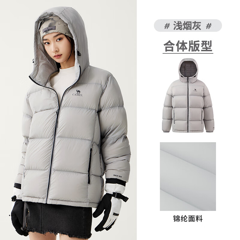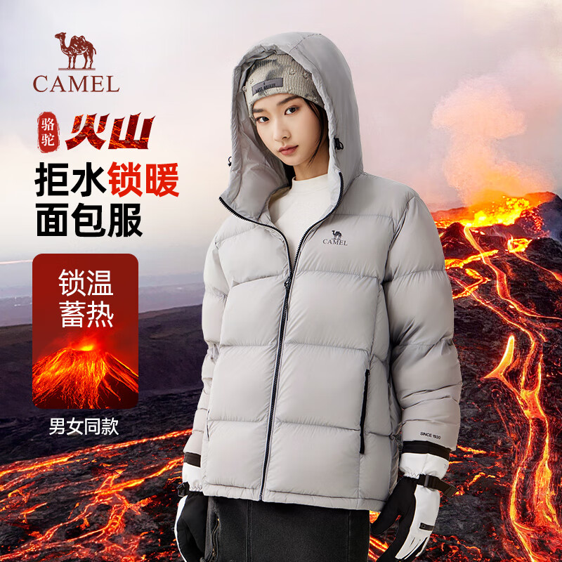 骆驼火山羽绒服男女款城市轻户外加厚防寒面包服冬季外套(浅烟灰 M)