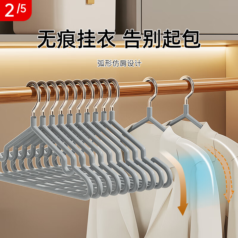 这款初舍(CHUSHE)衣架加粗无痕凹槽晾衣架是10个装大礼包,非常适合家庭使用。它不仅具有良好的承重能力和防滑肩角设计,还能有效避免衣服出现鼓包现象。