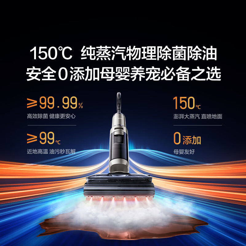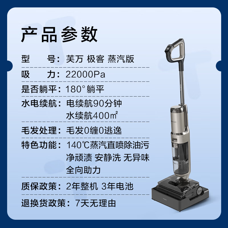 添可芙万极客蒸汽版全向助力洗地机:140℃高温除油污,90分钟超长续航!