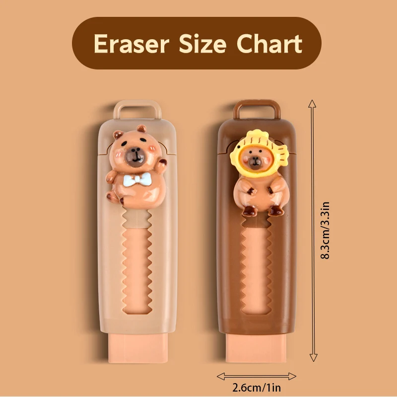 Get ready to fall in love with our adorable capybara-shaped retractable rubber erasers! These cute Korean stationery items are the perfect addition to your school or office supplies collection.