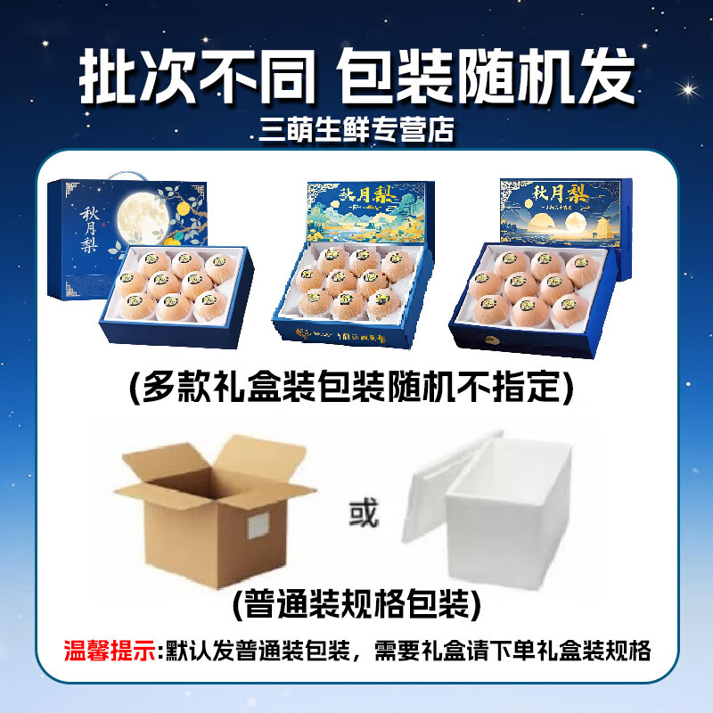 中秋佳节,送礼当然要选最好的!来自山东的秋月梨不仅味道鲜美,而且果形硕大,口感脆甜。这款5斤精选装的秋月梨,每颗单果平均重量约250g+,净重4.5斤,保证让您尝到真正的秋日美味。