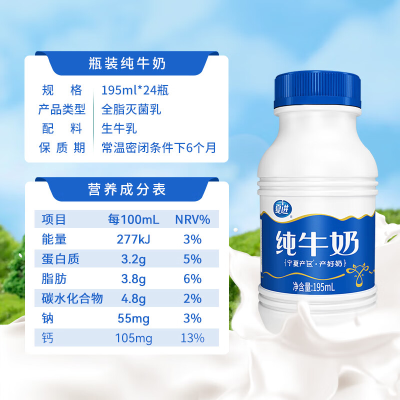 夏进纯牛奶 195ml*24瓶 – 购买优惠价:76.7元