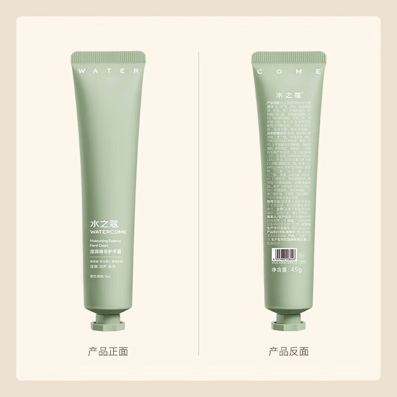 - 补水保湿: 水之蔻护手霜富含多种滋养成分,有效补充水分并锁住皮肤原有的水份。