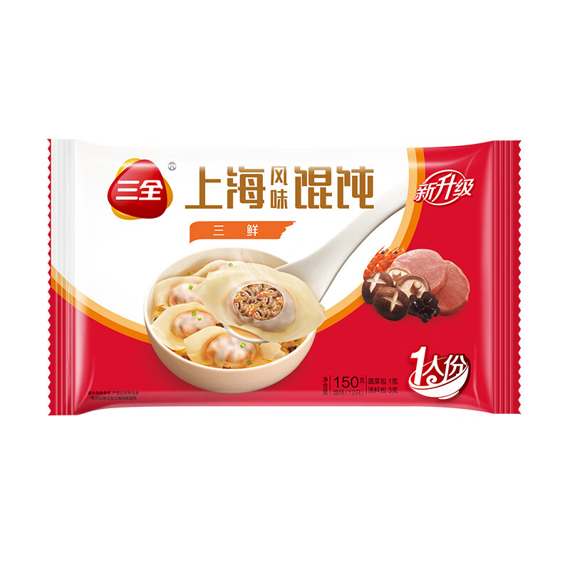 - 产品名称:三全中式早餐包点冷冻速食系列 上海风味三鲜馄饨150g12只