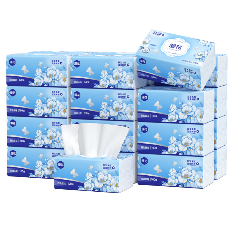 超值优惠!漫花蓝茶花家用纸巾抽纸整箱批发仅售4.1元