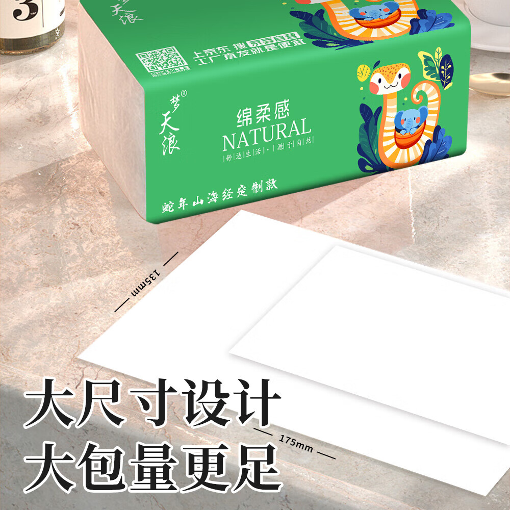 超值好货!梦天浪大包抽纸山海经蛇年定制款五层加厚亲肤可湿水,仅售¥3.01!