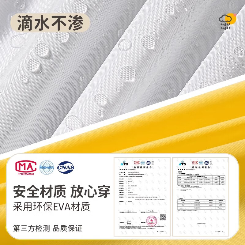 • 材质优良: 使用高质量材料制作,确保雨衣的耐用性和防水性。