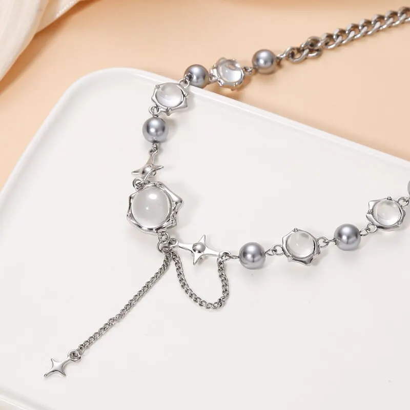 This elegant silver-colored choker is designed to make you stand out. With its delicate opal glass details and stylish thorn design, it’s sure to be the centerpiece of your outfit. Whether you’re attending a wedding, cocktail party, or just want to add a touch of elegance to your daily look, this necklace is an excellent choice.