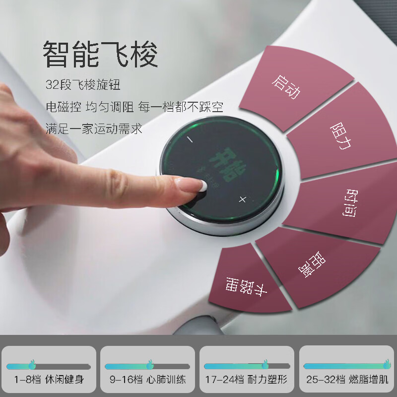 - 32段磁控调阻系统:让您随心所欲地调整骑行阻力,适应不同阶段的健身需求。
