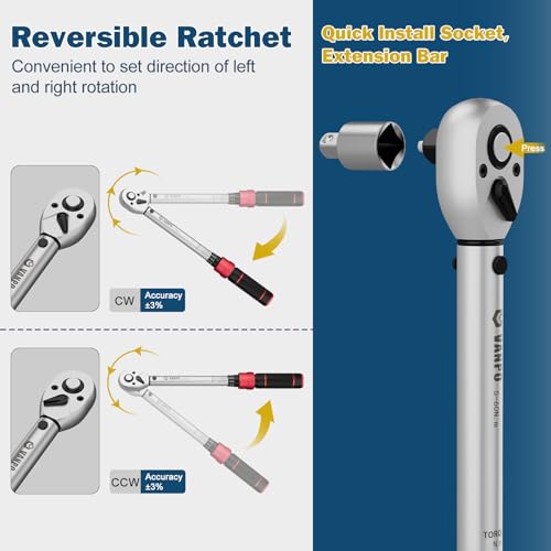 - Safe & Reliable: Clearly audible “click” and noticeable vibration when the preset torque is reached to avoid over-tightening.