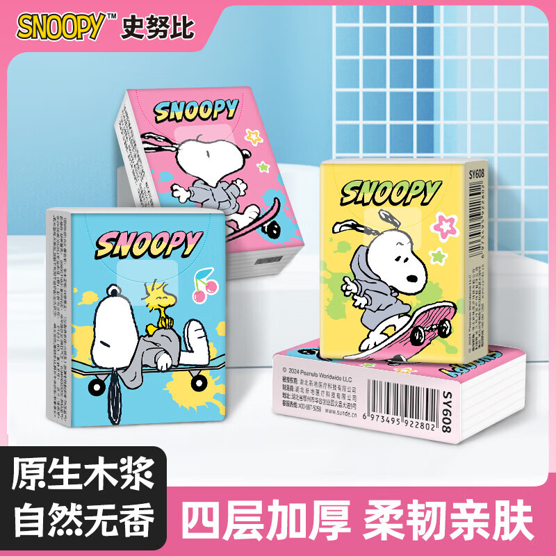 史努比SNOOPY手帕纸4层7片装小包纸巾抽纸学生卫生纸面巾纸,现在只需 9.99 元! 炫彩多巴胺设计,高颜值便携包装,不仅适合日常携带使用,更可作为创意礼物赠送。购买即享京喜优惠与近90天高佣专属服务,好评率高达100%。