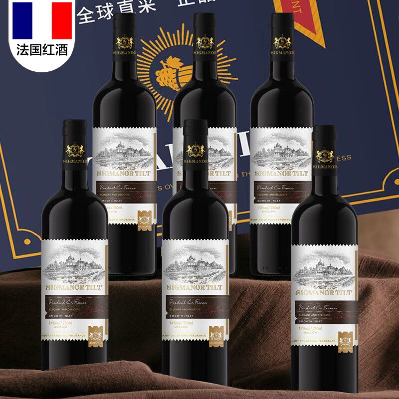 干红葡萄酒法国原酒进口红酒750ml 【进阶款】蒂尔特6支+海马刀,现仅售59.9元!好评率高达99%,精选优质葡萄酿制而成。