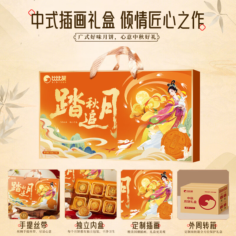 比比赞(BIBIZAN)踏秋追月月饼礼盒,仅售23.9元!内含16个精美的月饼,适合中秋送礼或家庭聚会享用。