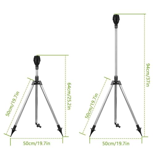 - Stable Telescopic Tripod Base: Ensures maximum reach and uniform water distribution.