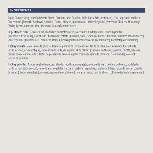 - Weight can vary slightly depending on the amount of gummies inside each package
