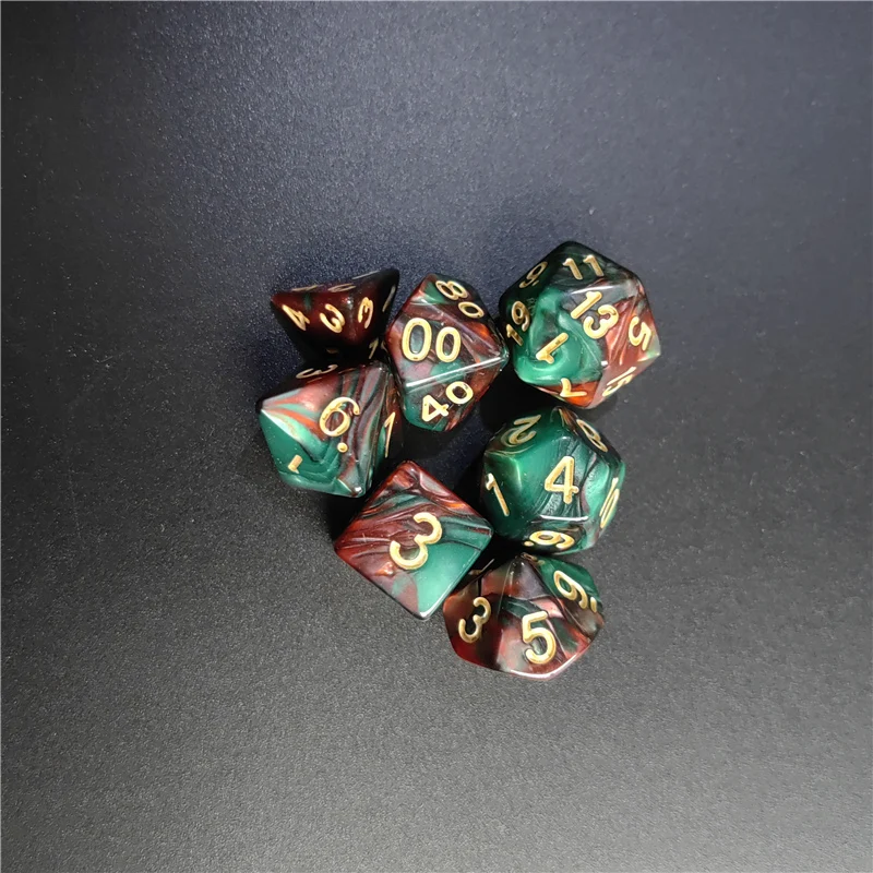 - Number of Dice: 7 pieces, including D4, D6, D8, D10, D12, and two D20s.