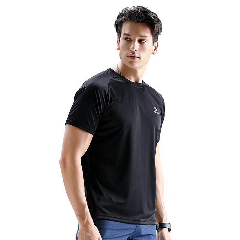 探拓(TECTOP)速干T恤 透气男圆领短袖速干衣043 黑色 L
