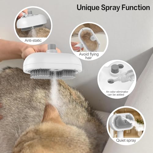 Effortlessly manage your cat’s grooming routine with the Songsier Steamy Brush, an innovative and convenient tool designed to make pet care a breeze. This automatic cat grooming device features built-in self-cleaning technology and a fine mist sprayer that reduces static electricity.