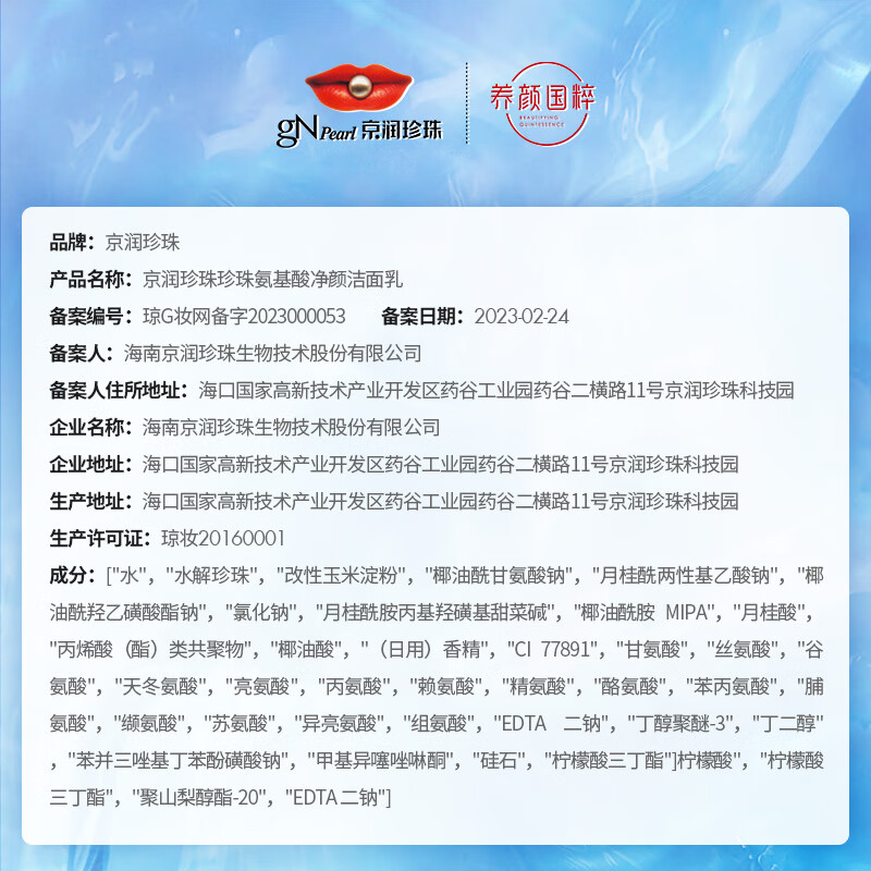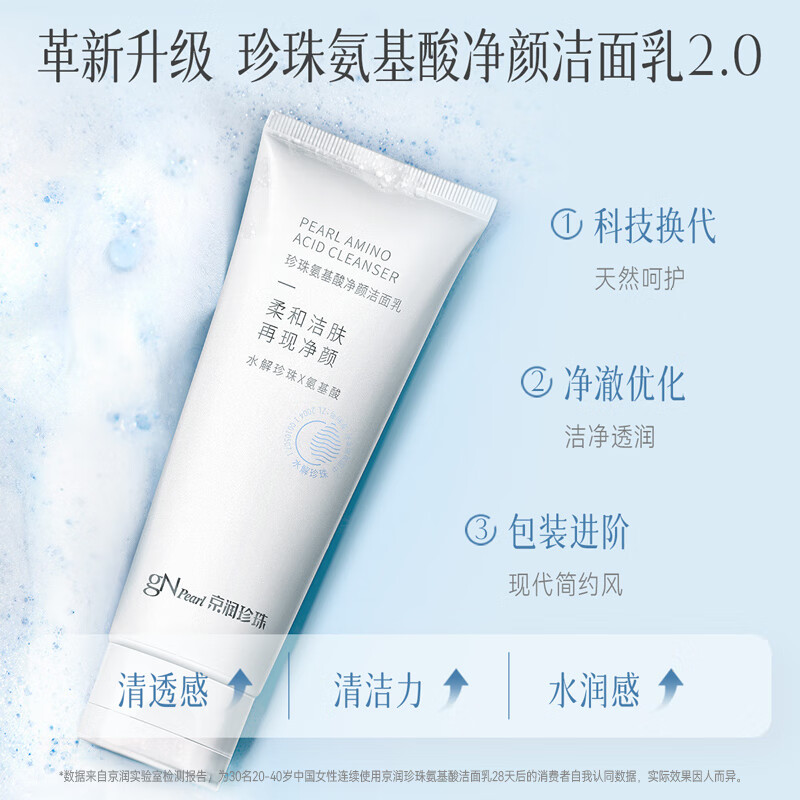 京润珍珠(gNPearl)的这款珍珠氨基酸净颜洁面乳,以其温和洁净、清爽不油腻的特点获得众多消费者的青睐。它不仅能够有效清洁肌肤,还能为皮肤补充所需的营养和水分。