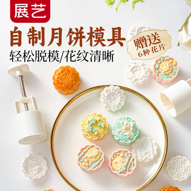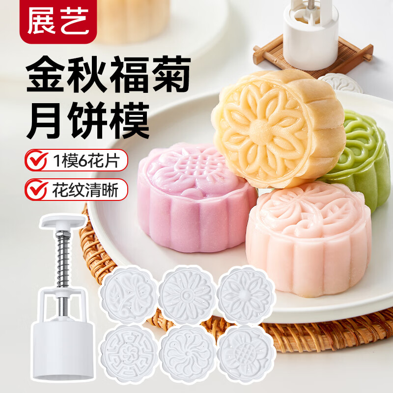 展艺月饼模具金秋福菊6花片50g糕点手压国风绿豆桂花糕烘焙模具中秋,仅需¥9.9!