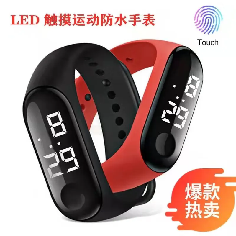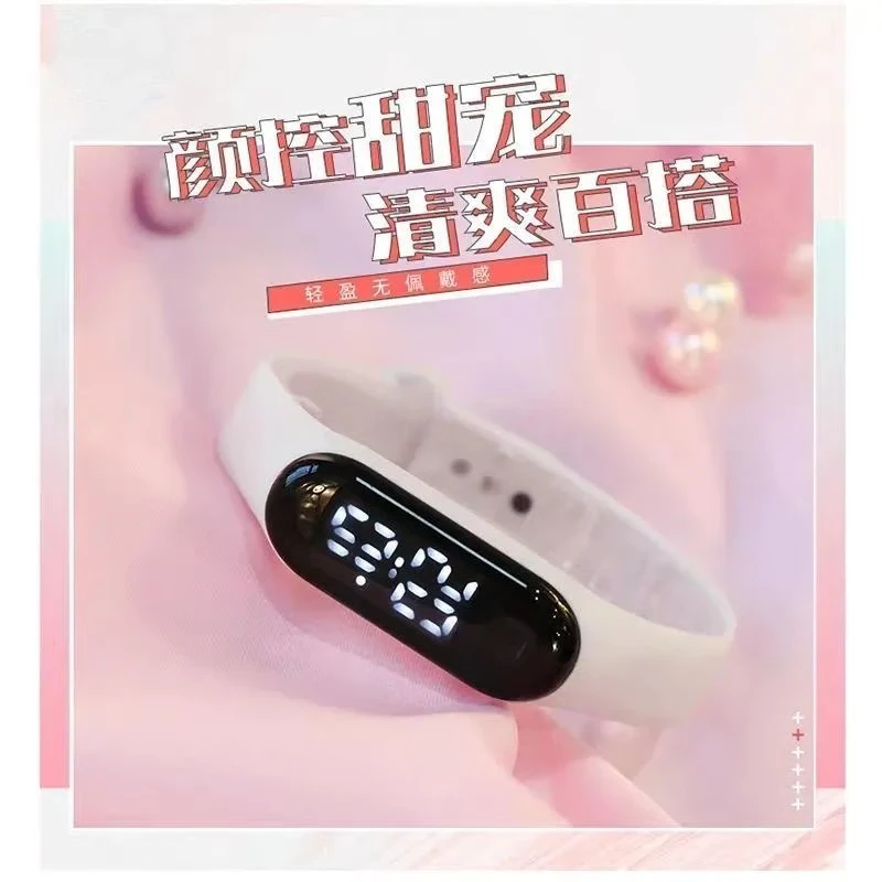 智能手表配件休闲运动电子手环手表夜光防水情侣男女学儿童手表硅胶手环 灰色