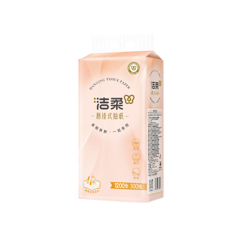 洁柔(C&S)抽纸悬挂式挂抽,4层设计,每提含300张,适合日常使用与家庭备用。不仅方便取用,更因其良好的品质获得广大用户的一致好评。