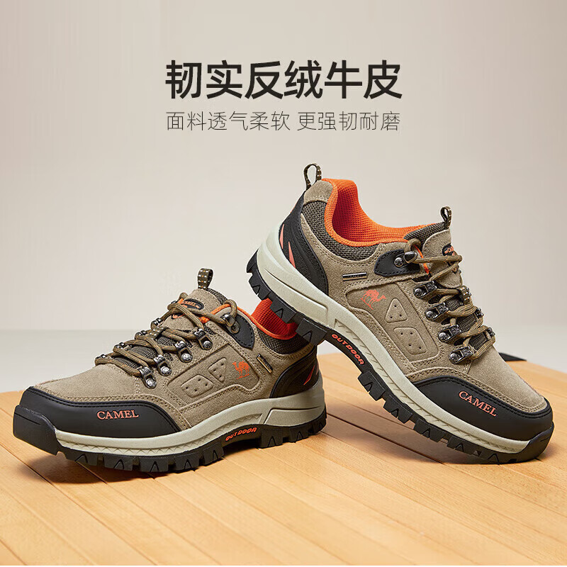 骆驼(CAMEL)男鞋户外休闲运动登山鞋 A632026925 深卡其桔红,专为追求高品质生活的男士打造。这款鞋具有卓越的防撞保护、超强抓地力和透气舒适性,无论日常通勤还是户外徒步都非常适用。