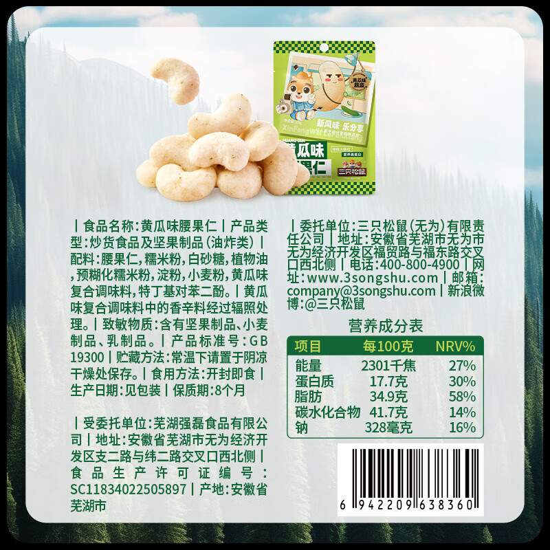 三只松鼠精选零食任选专区2 RX 腰果仁/黄瓜味,口感独特、营养丰富!现在只需 11.9 元,比起原价的优惠更加诱人。该产品以超过 5000 好评数和高达 97% 的好评率,得到了众多消费者的认可。