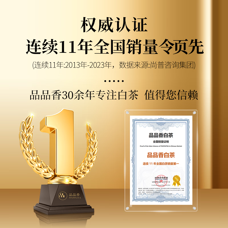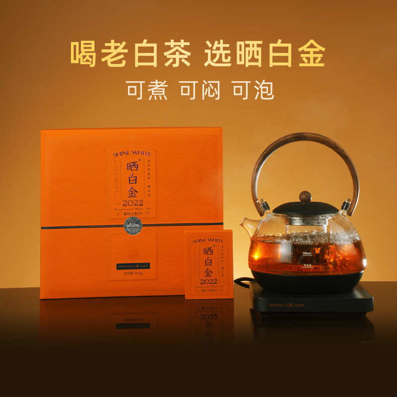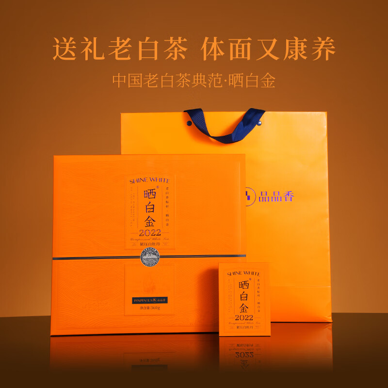 【品品香白茶 福鼎白茶晒白金老白茶2022年白牡丹360g】