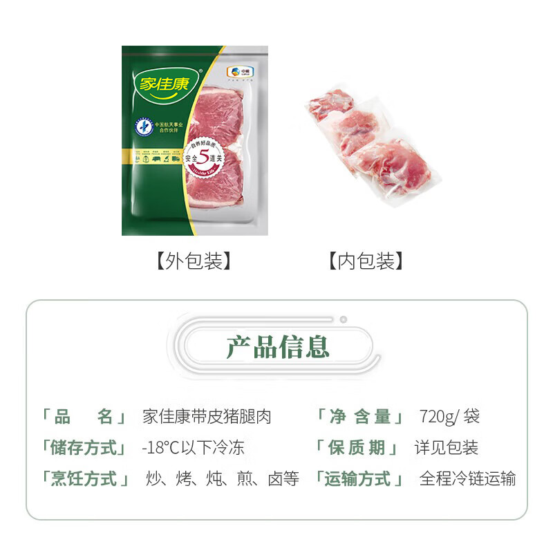 家佳康 带膘猪腿肉720g 冷冻前尖后腿肉