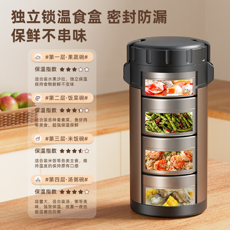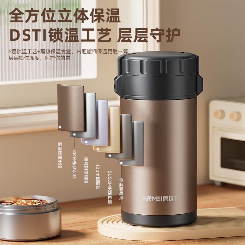 恩尔美(nRMEi)的这款24小时超长保温饭盒桶,采用高级别的316L不锈钢材质,具备卓越的保温效果,不论是冬天还是夏天都能让你享用到温度适宜的食物。