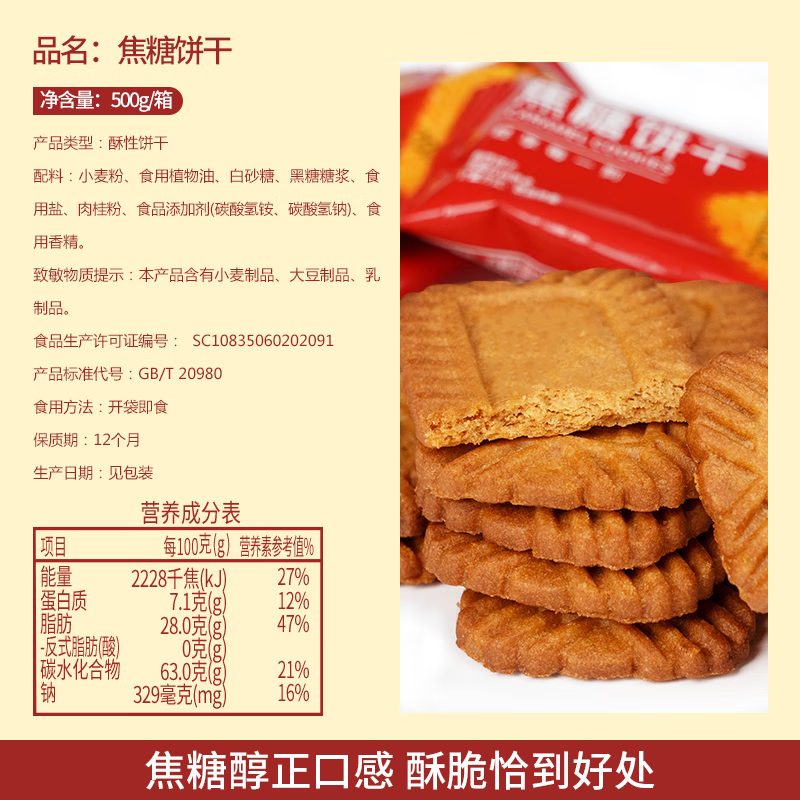 泓一比利时味焦糖饼干500g仅需14.75元!进口高级食材保留浓郁口感。2000条好评,98%的好评率。现限时优惠中。