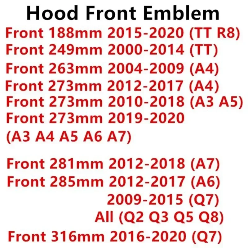 Enhance the look of your Audi A3, A4, A5, A6, A7, Q2, Q3, Q5, Q8 and TT with our premium ABS Black Hood Front Bonnet Grill Rear Trunk Emblem Logo Badge Sticker Decal. Get stylish stickers at an unbeatable price!
