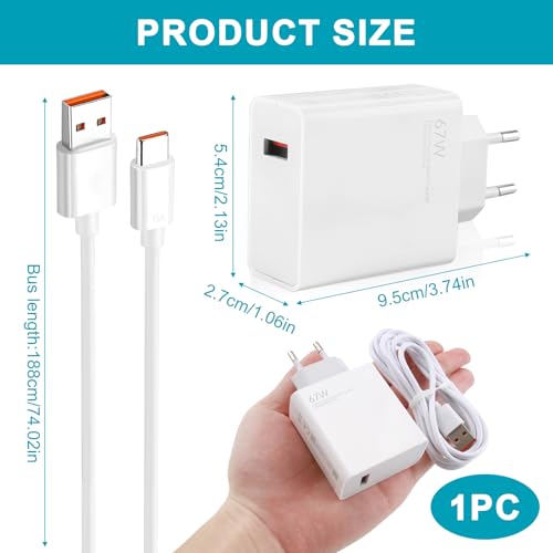 The Xiao-mi 67W Fast Charger offers great value with its powerful charging speed, extended compatibility range, and included USB-C cable. Perfect for everyday use at home or on-the-go.