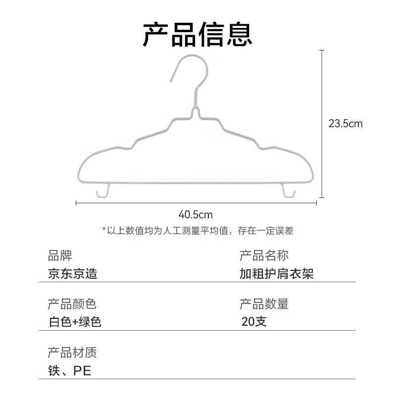 京东京造无痕晾衣架宿舍加粗衣服架,专为居住空间有限的你设计。20支的容量可以满足多种衣物收纳需求,特别适合宿舍或小型公寓使用。