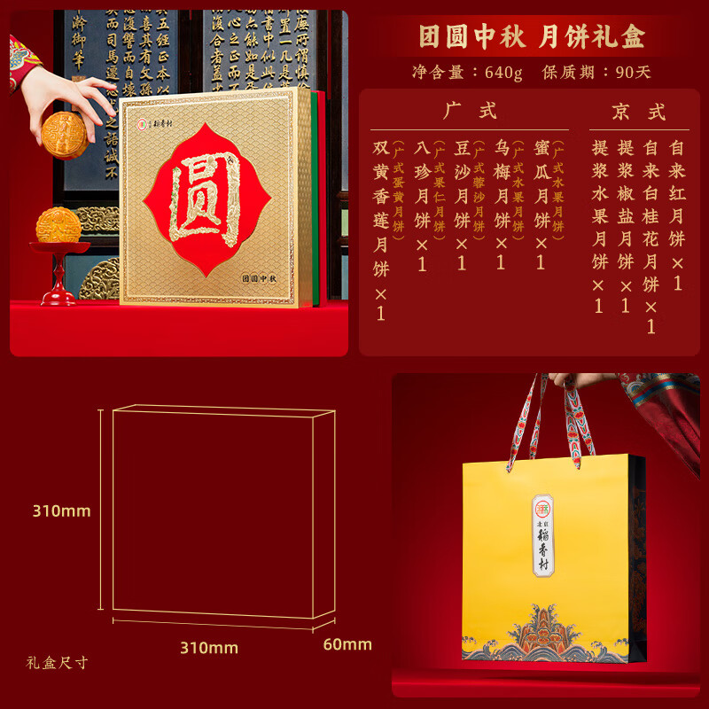 北京稻香村月饼礼盒不仅口味丰富,而且包装精美。无论是商务送礼还是家庭聚会,都是极好的选择。