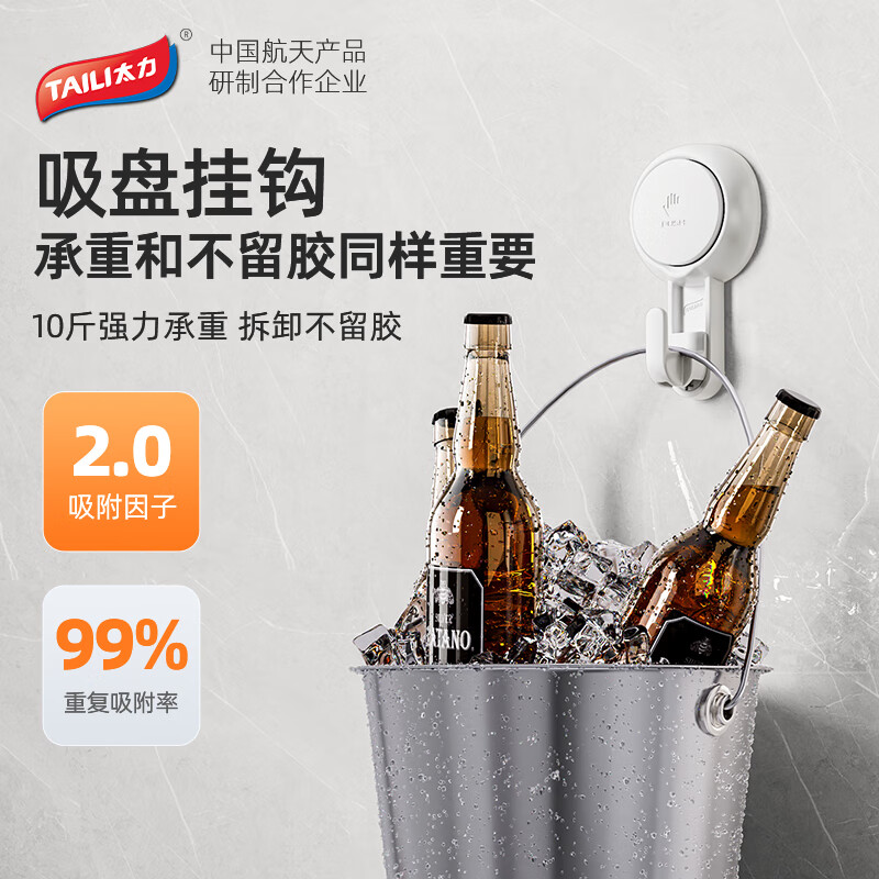 太力吸盘挂钩免打孔强力真空挂衣钩粘钩挂毛巾架衣服浴室卫生间经典款细钩,好评如潮!无需工具即贴即用,强力吸附安全环保。现仅售29.9元,速抢!