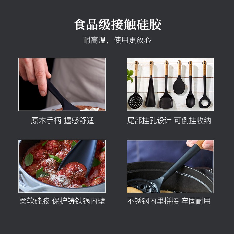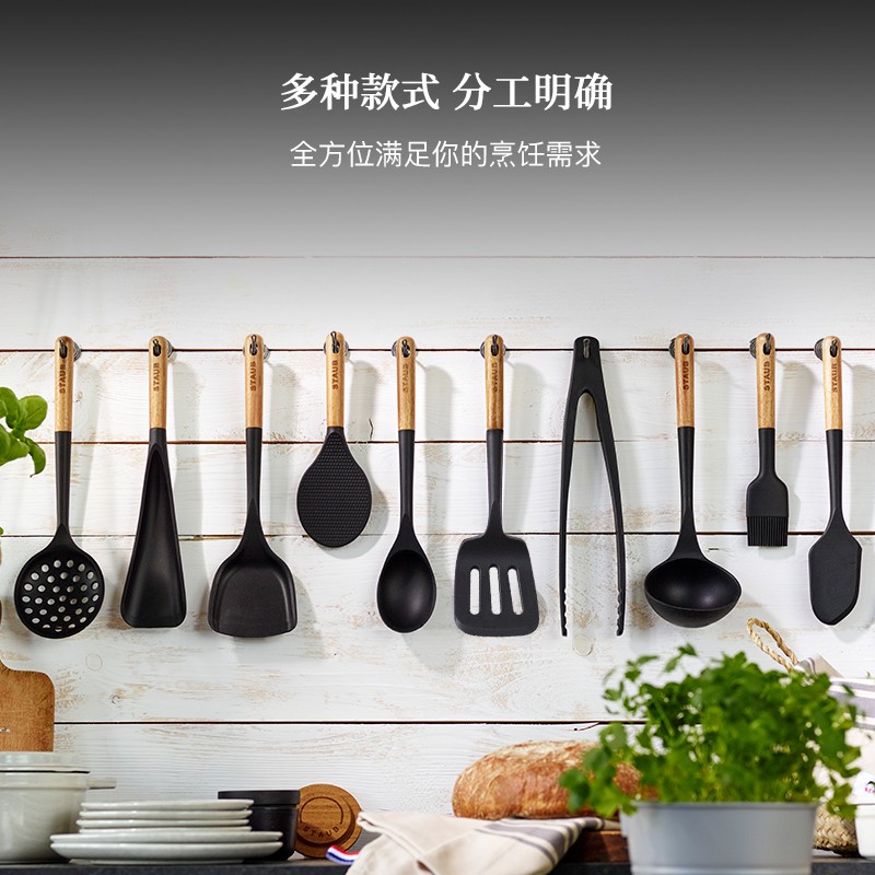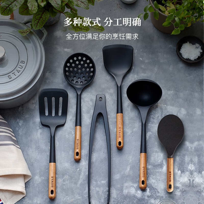 珐宝(staub)木柄硅胶家用汤勺饭勺漏勺刮勺分菜勺多功能勺厨具配件套组,现优惠价仅需¥126!