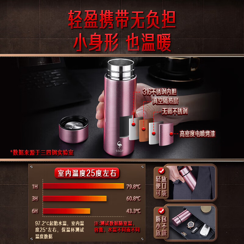三四钢迷你保温杯,女士专属便携水杯