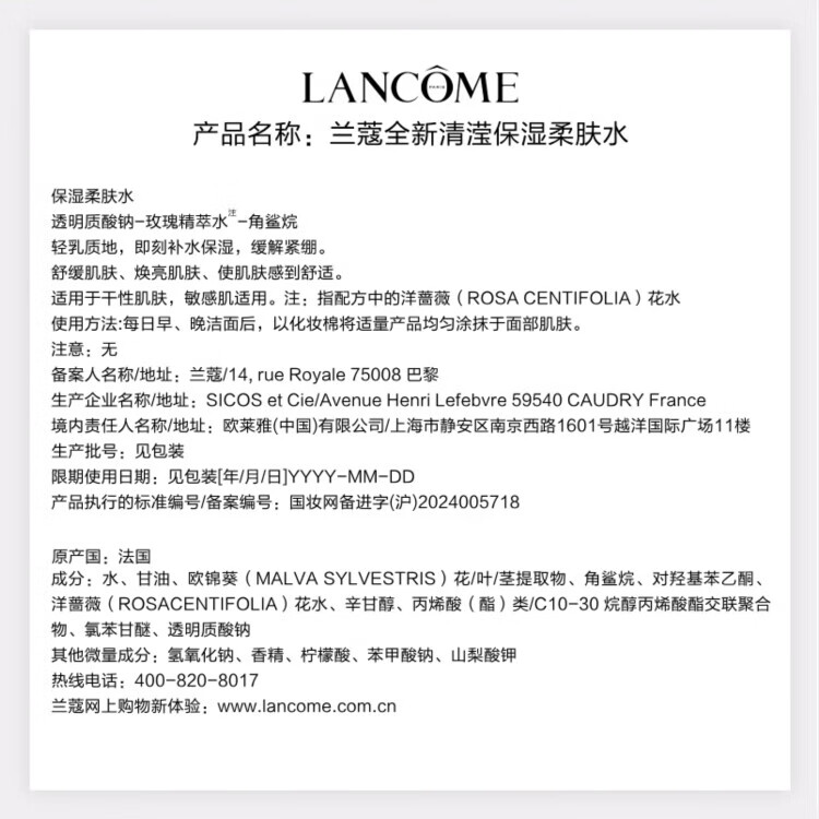 兰蔻清滢保湿柔肤水,你值得拥有!