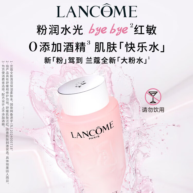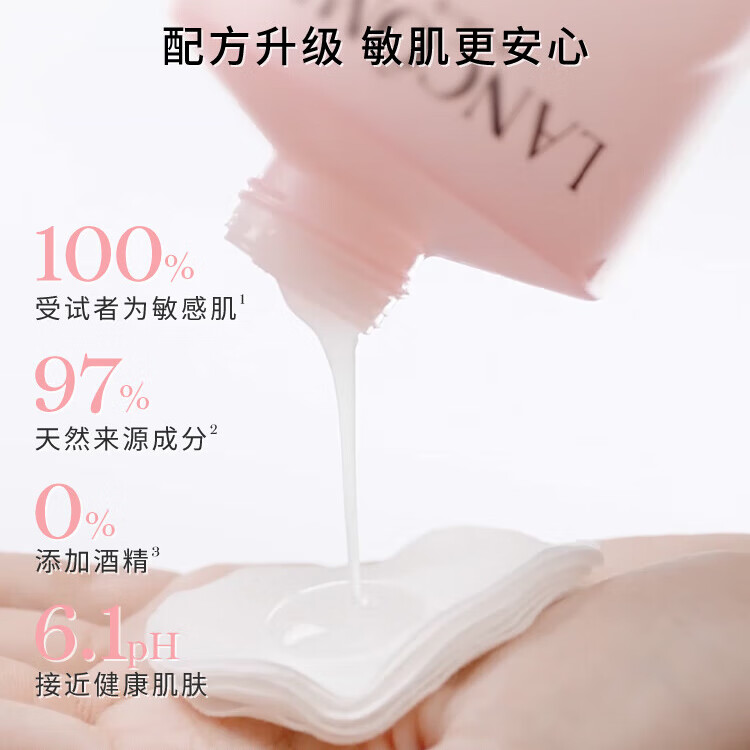 兰蔻清滢柔肤水采用创新科技,帮助肌肤建立天然的屏障,同时保持皮肤长时间湿润。它不含酒精和防腐剂,温和不刺激。