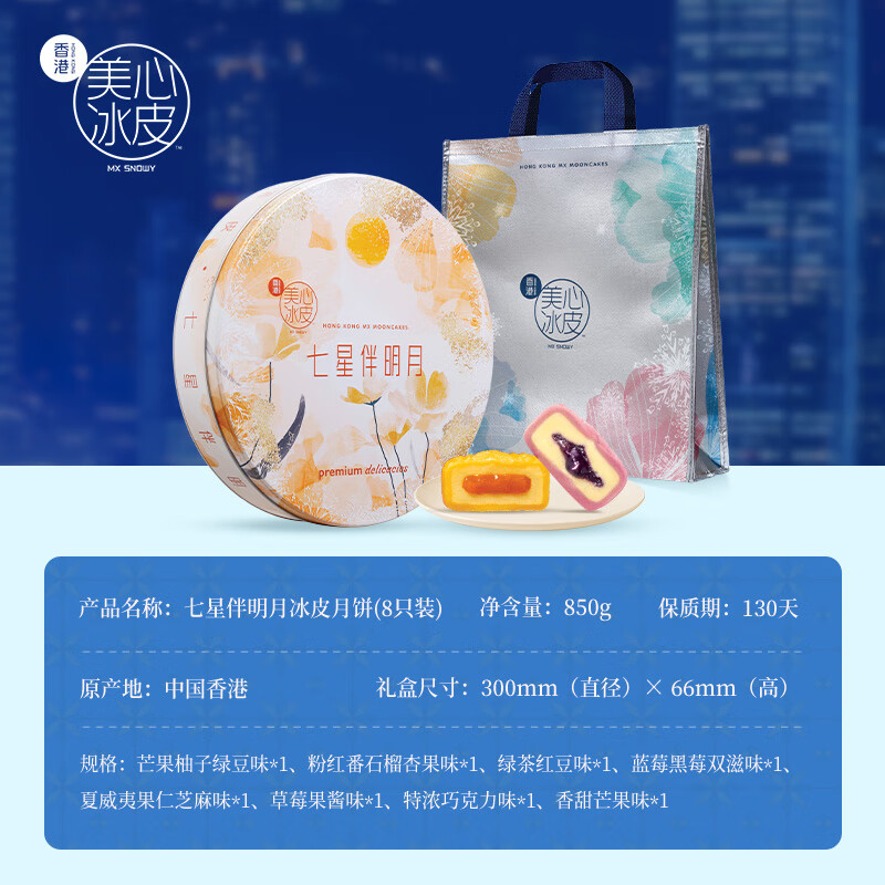 中秋节即将来临,美心(Meixin)七星伴明月冰皮港式月饼礼盒再次成为中秋送礼的首选!
