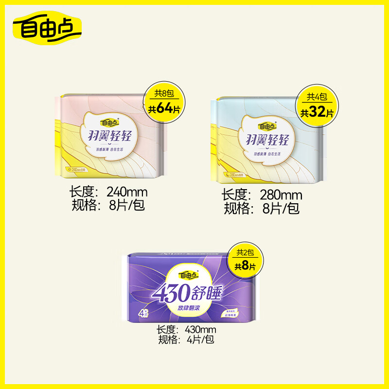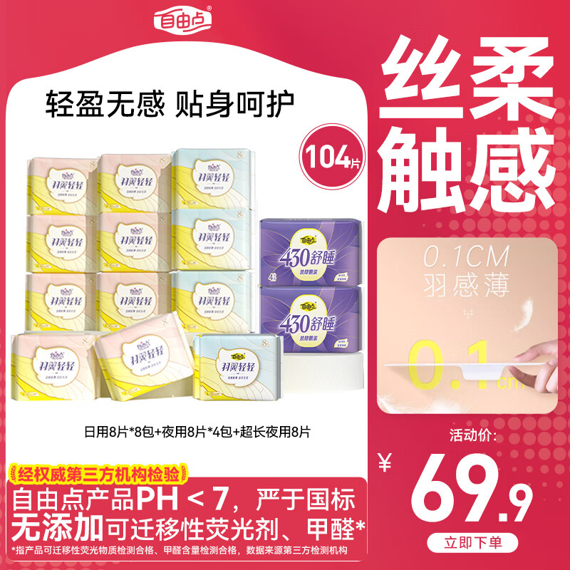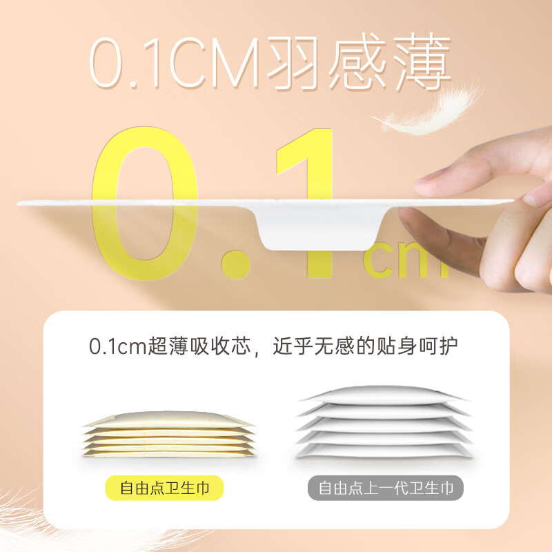 自由点 羽翼轻轻卫生巾超薄透气,日夜用组合仅售66.9元。50万好评验证,品质值得信赖!