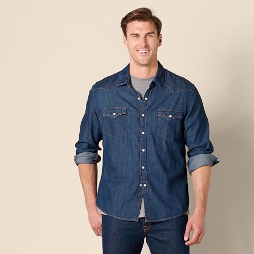 The Amazon Essentials Vaquero Fit Shirt is a versatile wardrobe staple designed to withstand daily wear and tear while remaining comfortable year-round. Made from 100% cotton, this shirt offers both durability and style with its western design elements.