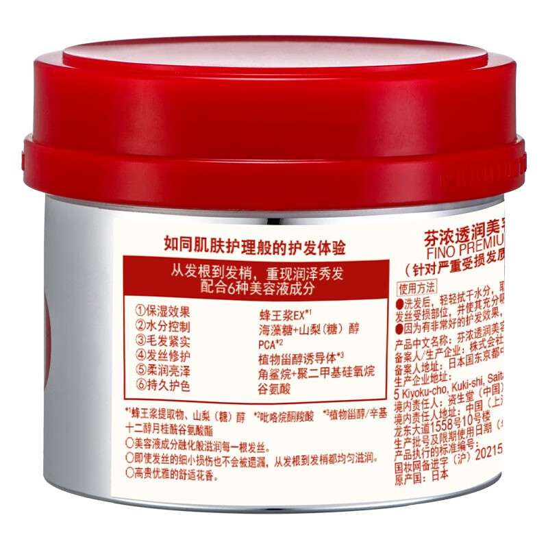 FINO 红宝石瓶透润美容液发膜,采用独特配方,深层保湿滋润每一根头发。它不仅能改善毛躁问题,还能够使秀发顺滑柔软、散发自然光泽。此外,这款美容液发膜的使用感极佳,230g大容量装可以满足多次使用需求。